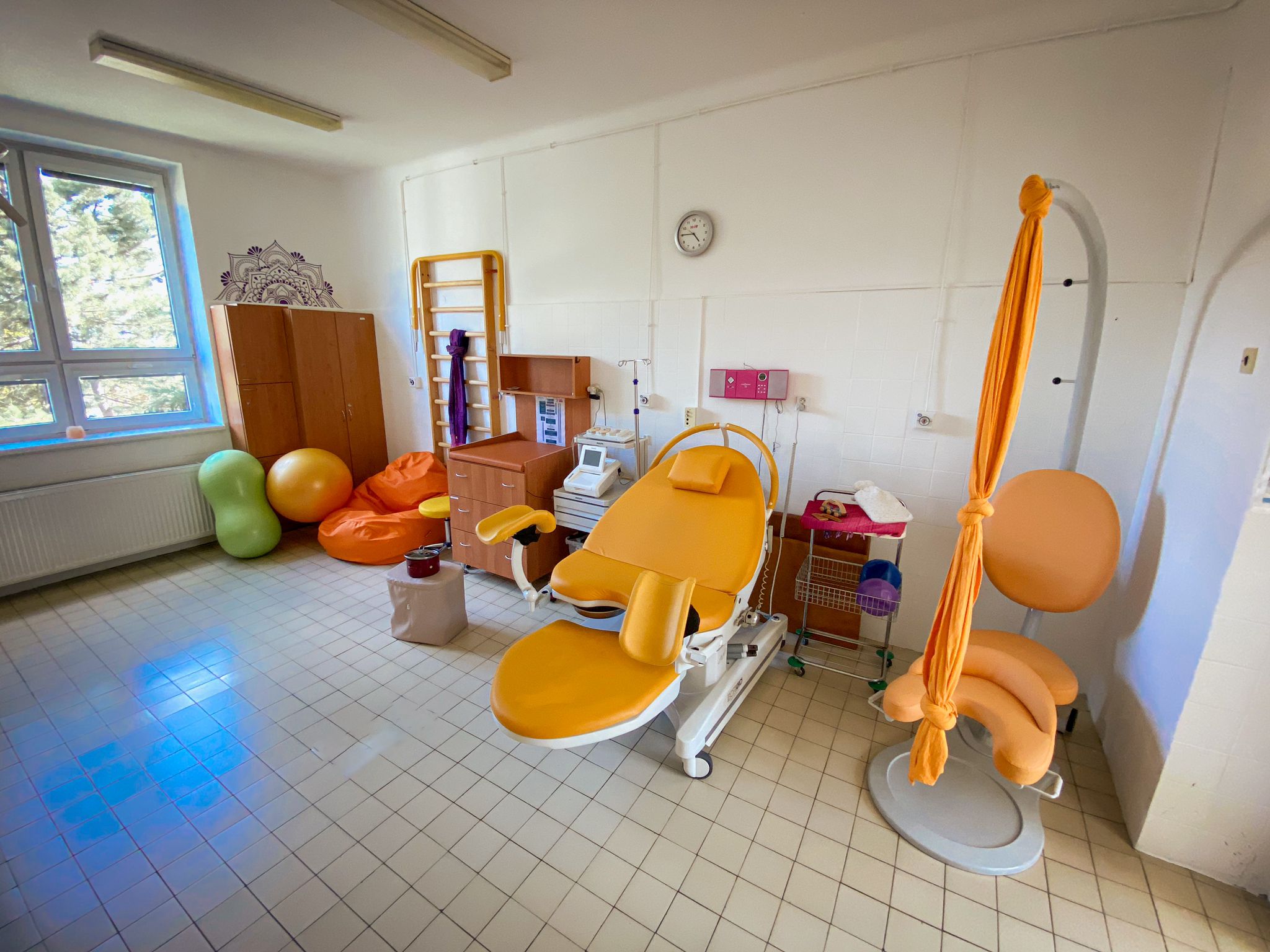 Během porodu využíváme centrální bezdrátový CTG monitoring ozev plodu, což rodičkám umožňuje volný pohyb i při nutnosti provádět CTG záznam. Žena tak může během kontrakcí využívat i jiné polohy než polohu vleže. Sondy jsou vodotěsné, takže umožňují sledování plodu i ve sprše během hydroterapie.