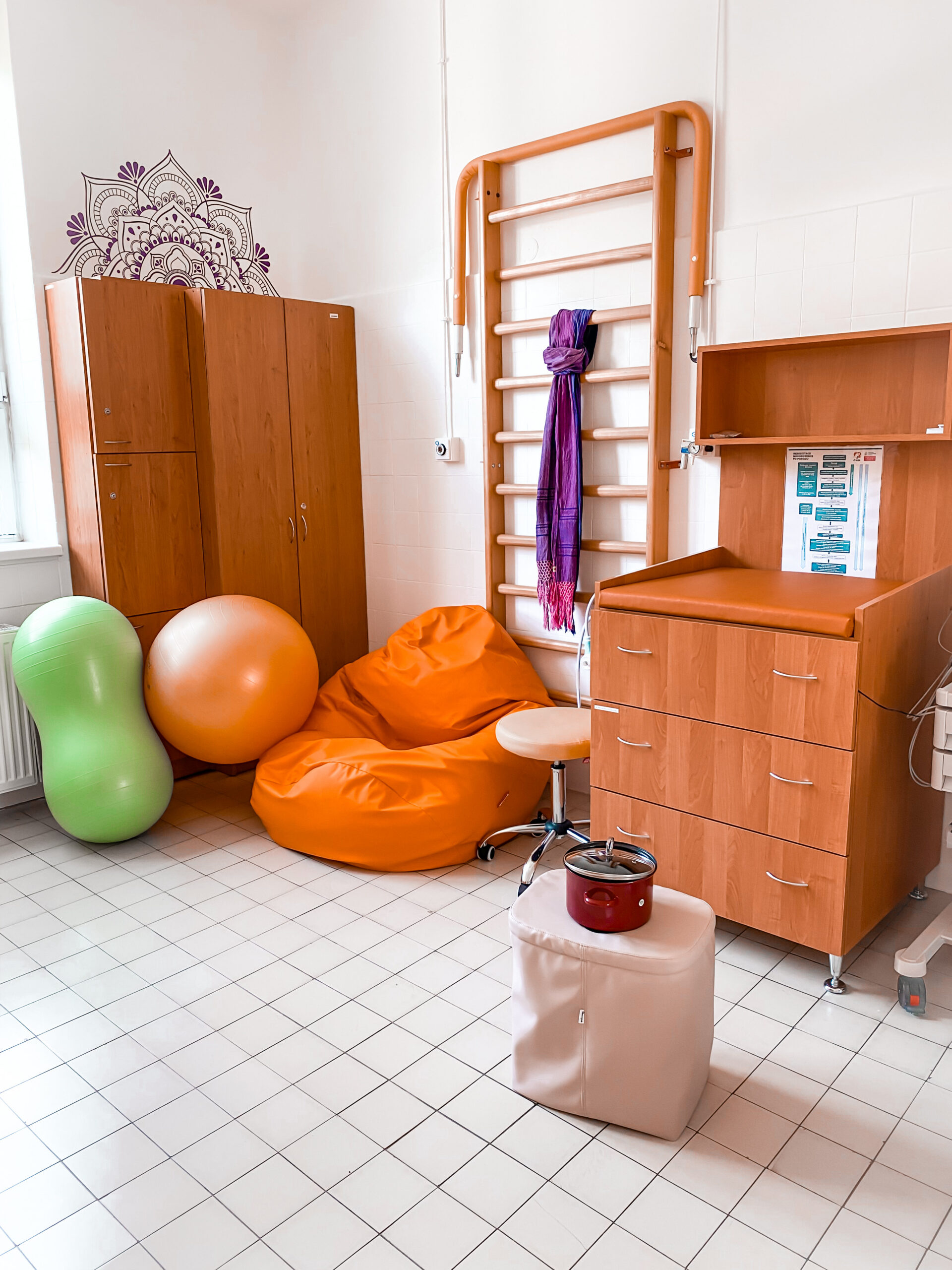 Podpůrné metody – porodnické polohy, relaxace ve sprše, porodní vaky, Gym ball, masáže, aromaterapie, muzikoterapie, bylinná napářka.